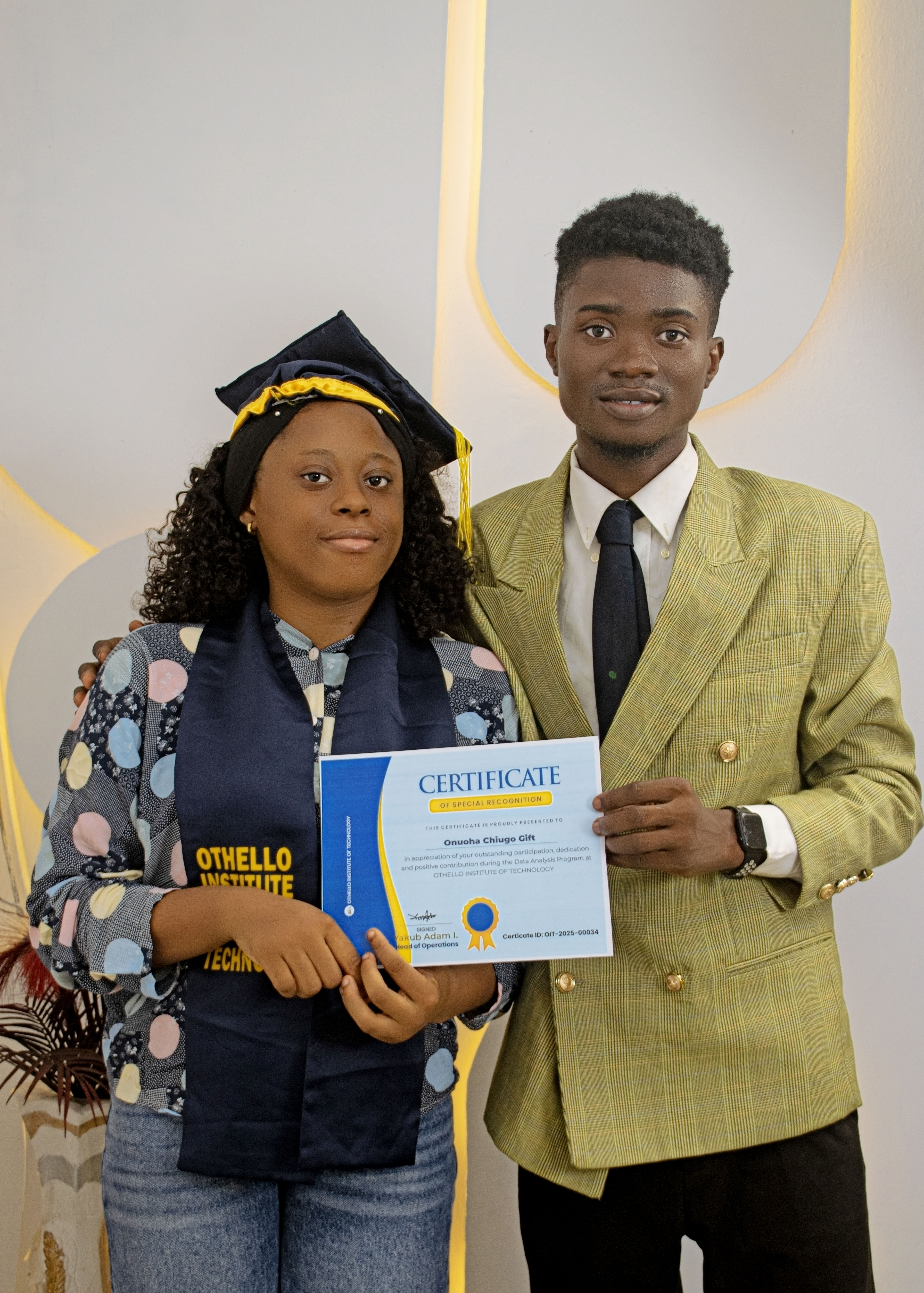 Othello Institute of Technology is a practical tech training institute in Lagos focused on equipping students with in-demand digital skills like Data Analysis, Web Development, Python, Design and AI.